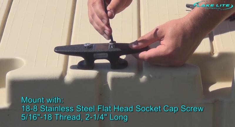 The Solar Cleat Light easily mounts to all types of docks including the EZ-Dock & Wave-Armor brand floating docks. The bolt patterns are exactly the same as the bolt inserts. You can even use your existing hardware and bolts! Works with other rotationally-molded floating docks that use the standard 8" nylon solar cleat light with whole spacing of 2-1/4". Mounting screws/bolts are not included, but EZ Dock Mounting Bolts can be ordered from the "Accessories and Spare Parts" tab on this page.